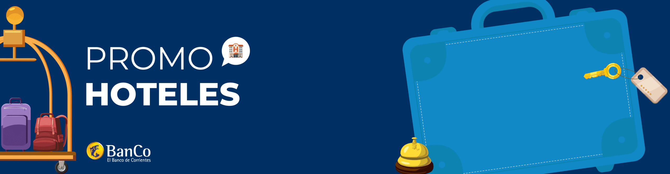 TODOS LOS DÍAS EN COMPRAS CON TARJETAS DE CRÉDITO VISA Y MASTERCARD DEL BANCO DE CORRIENTES SE BONIFICARÁ EL 10% (DIEZ POR CIENTO) SOBRE EL IMPORTE TOTAL DE LA COMPRA Y HASTA 3 (TRES) CUOTAS SIN INTERÉS EN COMERCIOS RADICADOS EN EL PAÍS BAJO LOS RUBROS, EN VISA: HOTELES, RESIDENCIALES, Y EN MASTERCARD: HOTELES, ALBERGUES, MOTELES, HOSTERÍAS, A.C.A. TURISMO, TIEMPO COMPARTIDO. CFTEA: 0% COSTO FINANCIERO TOTAL EFECTIVA ANUAL. TASA NOMINAL ANUAL 0,00%. TASA EFECTIVA ANUAL: 0,00%. EN TODOS LOS CASOS, LA BONIFICACIÓN SE VERA REFLEJADA COMO UN CRÉDITO EN EL PRIMER O SEGUNDO RESUMEN DE CUENTA (DE TARJETA DE CRÉDITO) QUE SE EMITA CON POSTERIORIDAD A LA FECHA DE COMPRA.PROMOCIÓN NO ACUMULABLE CON OTRAS PROMOCIONES VIGENTES. PROMOCION SOLO VALIDA EN COMERCIOS ADHERIDOS A LA MISMA. NO APLICA A PAGOS A TRAVÉS DE BILLETERAS VIRTUALES Y/O PLATAFORMAS DE PAGO ONLINE (POR EJEMPLO, ZOCO, TODO PAGO, MERCADO PAGO, UALÁ, ETC.). NO APLICA PROMOCION PARA VENTAS REALIZAS EN PLANES NACIONALES «CUOTA SIMPLE».